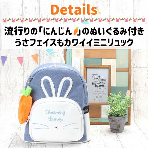 うさフェイスが可愛いフロントポケットや ロゴテープがおしゃれなサイドポケットなど 収納ポケットもたくさんで見た目も機能性も抜群◎ お子様へのプレゼントにもおすすめ♪