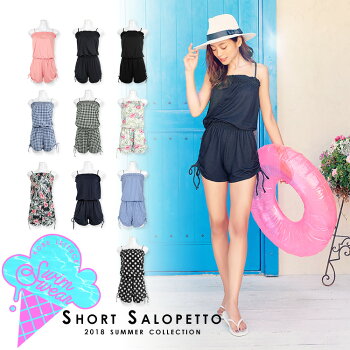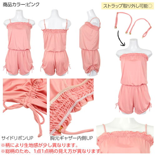 水着 レディース 体型カバー サロペット ビーチで体型カバーも♪[ 花柄 ギンガム…]肩紐取外し可!水着用ショートサロペット/ ベアオールインワン ロンパース タンキニ ビキニ セパレート 小胸 大きいサイズ [S097]【入荷済】