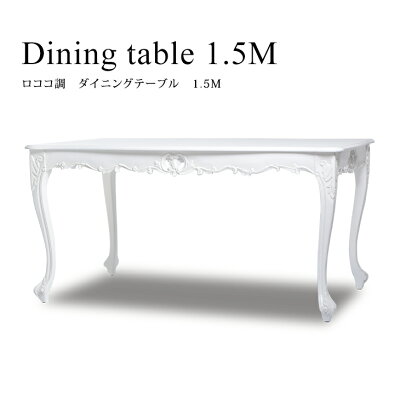 アンティーク 机 ロココ調家具 テーブル ダイニングテーブル 1.5M幅 木製 4人用 白 ホワイト アンティーク調 ロマンチック おしゃれ 姫系 インテリア VTA4235-1.5-18