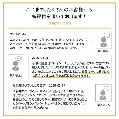 ビーズのヘたりにくさ、ビーズを入れる袋の素材、 カバーの素材これらどれもがビーズクッションの使い心地を左右するポイントです。