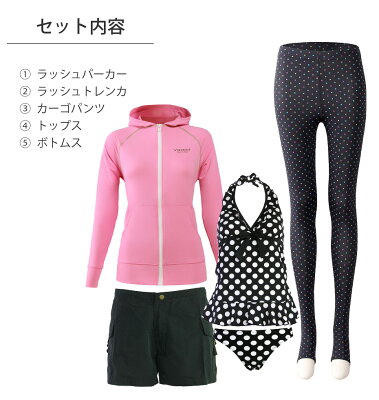 【送料無料】ラッシュガード セット レディース タンキニ 水着 5点セット VAXPOT(バックスポット) ラッシュガード パーカー 水着 セット VA-4658【UPF50+ UV ラッシュパーカー タンキニ ラッシュガード トレンカ ラッシュトレンカ サーフパンツ】[返品交換不可][TP001]